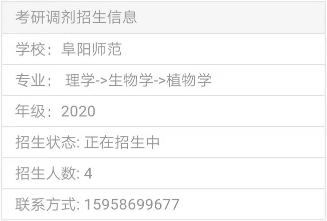 以上就是“2020考研調(diào)劑信息:阜陽師范大學(xué)生物植物學(xué)專業(yè)接收碩士調(diào)劑生”,的全部?jī)?nèi)容,2020考研全國(guó)調(diào)劑綜合服務(wù)平臺(tái)正式上線!三大功能亮點(diǎn),幫你輕松調(diào)劑!