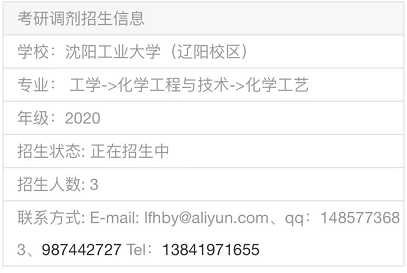 以上就是“2020考研調劑信息:沈陽工業大學化學工程與技術專業接收碩士調劑生”,的全部內容,2020考研全國調劑綜合服務平臺正式上線!三大功能亮點,幫你輕松調劑!