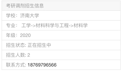 以上就是“2020考研調(diào)劑信息:濟(jì)南大學(xué)材料科學(xué)與工程專業(yè)接收碩士調(diào)劑生”,的全部內(nèi)容,2020考研全國調(diào)劑綜合服務(wù)平臺正式上線!三大功能亮點,幫你輕松調(diào)劑!