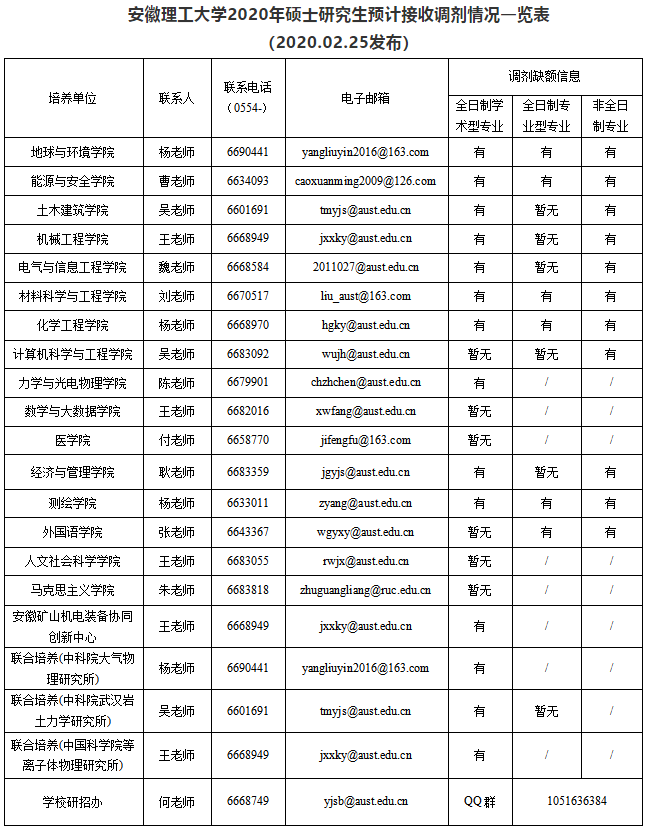 以上就是“2020考研調劑信息:安徽理工大學2020年研究生招生調劑通知”的全部內容,祝您考研成功!