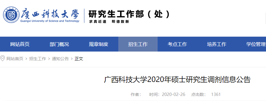 2020考研調劑信息:廣西科技大學2020年研究生招生調劑通知”的相關內容,希望對大家有所幫助!