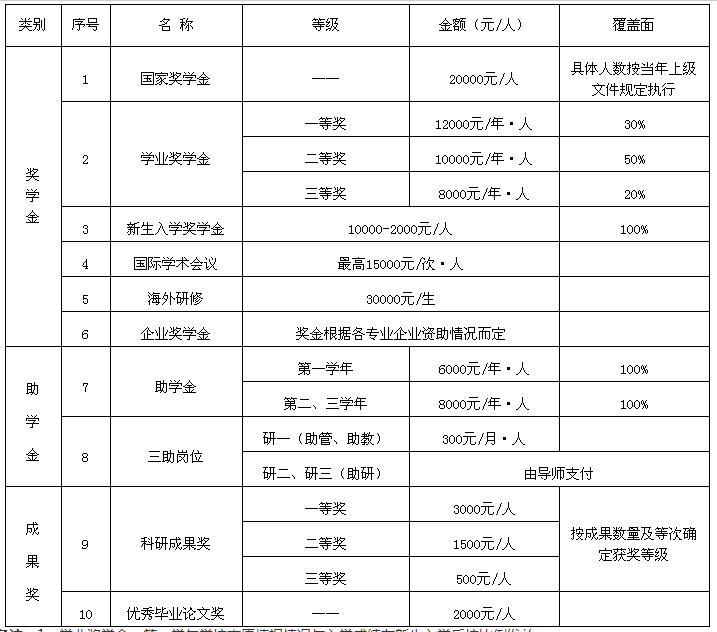 三、全日制碩士研究生獎助體系一覽表