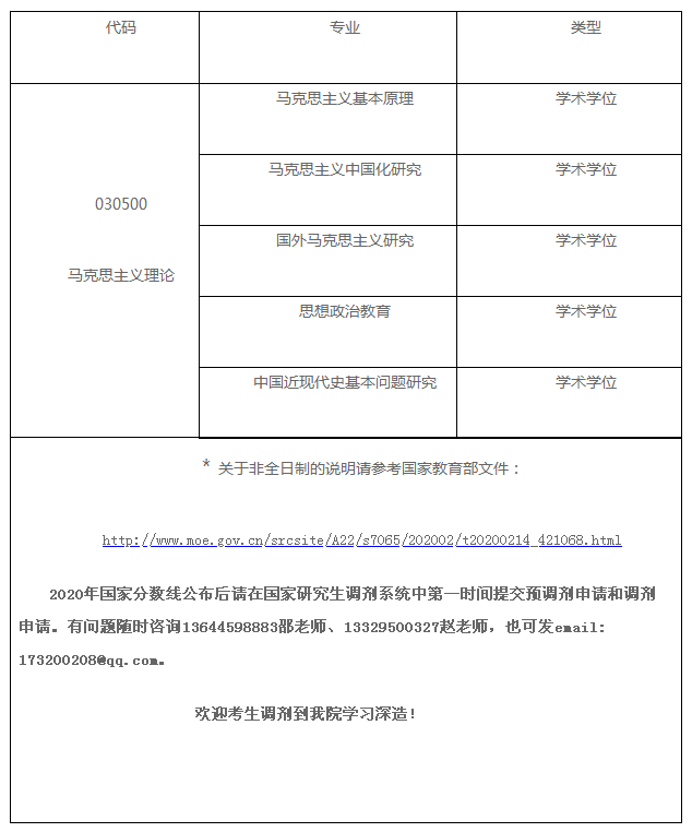 2020年馬克思主義學(xué)院擬接收調(diào)劑專(zhuān)業(yè)計(jì)劃: