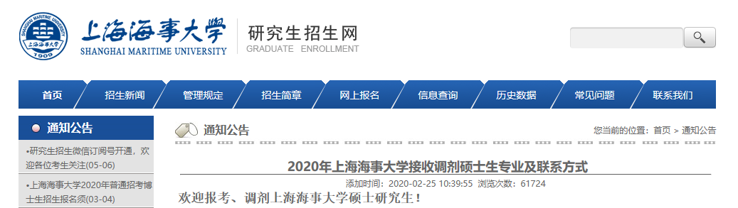 考生可自行登錄上海海事大學預調劑系統申請調劑。(注意該系統主要是起收集調劑信息的作用。)