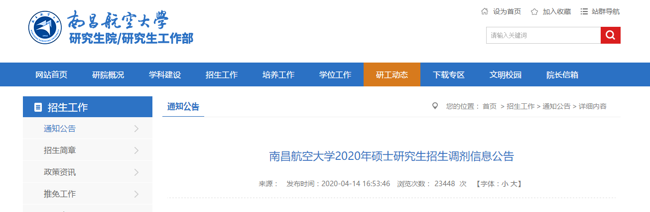 以上就是“2020考研調(diào)劑信息:南昌航空大學2020年碩士研究生招生調(diào)劑信息”的全部內(nèi)容!更多考研調(diào)劑內(nèi)容,請關(guān)注考研調(diào)劑信息欄目!