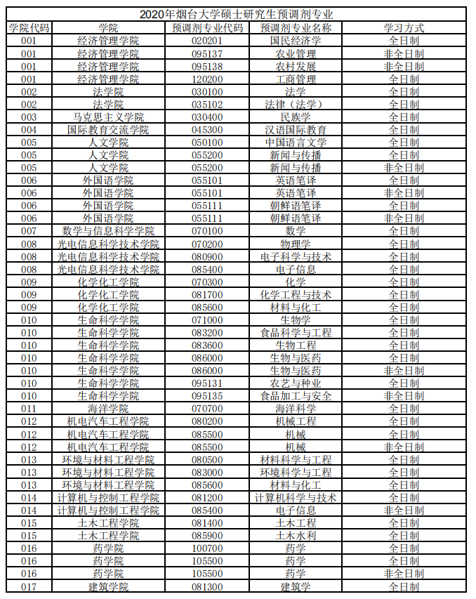 2020年煙臺大學碩士研究生招生預調(diào)劑通知