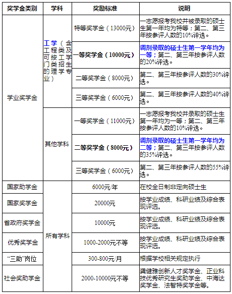 我校為全日制非定向碩士研究生提供了覆蓋面廣、極富競爭力的獎(jiǎng)助學(xué)金,其中學(xué)業(yè)獎(jiǎng)學(xué)金、國家助學(xué)金100%覆蓋,具體如下: