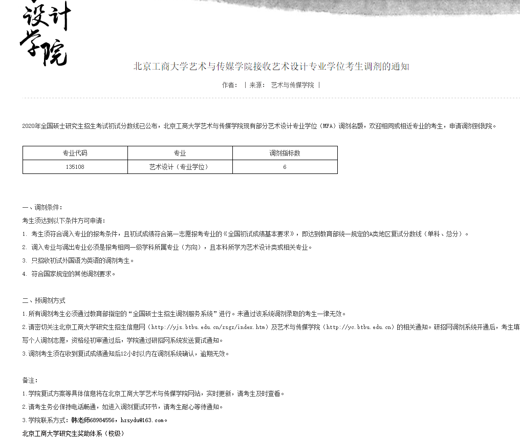 以上就是“2020考研調(diào)劑信息:北京工商大學(xué)藝術(shù)與傳媒學(xué)院2020年碩士研究生招生調(diào)劑信息”的全部內(nèi)容!更多考研調(diào)劑內(nèi)容,請關(guān)注考研調(diào)劑信息欄目