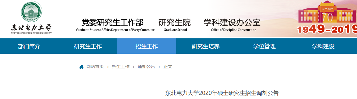 ?原標題:東北電力大學2020年碩士研究生招生調劑公告