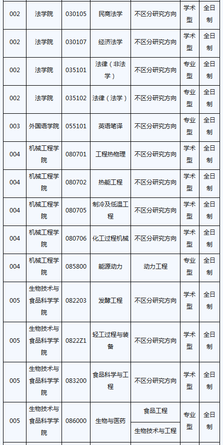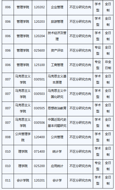 我校2020年碩士研究生招生接受調劑考生的專業信息如下表,非全日制專業原則上只招收在職定向人員。調劑專業缺額信息將通過“全國碩士生招生調劑服務系統” (http://yz.chsi.com.cn)(以下簡稱“調劑系統”)向考生公布,以調劑系統公布為準。