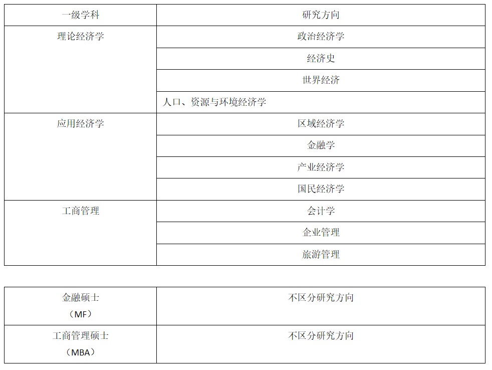 以下是經濟管理學院擬接受調劑的專業和方向: