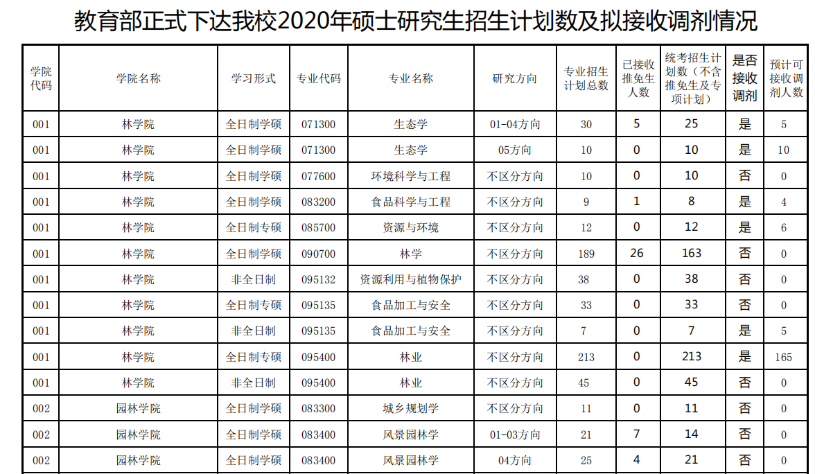 2020考研調劑信息:東北林業大學2020年碩士研究生招生調劑信息
