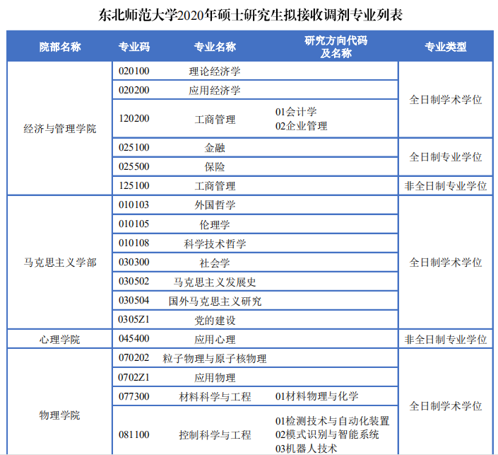 以上就是“2020考研調(diào)劑信息:東北師范大學(xué)2020年碩士研究生招生調(diào)劑信息”的全部內(nèi)容!更多考研調(diào)劑內(nèi)容,請關(guān)注考研調(diào)劑信息欄目
