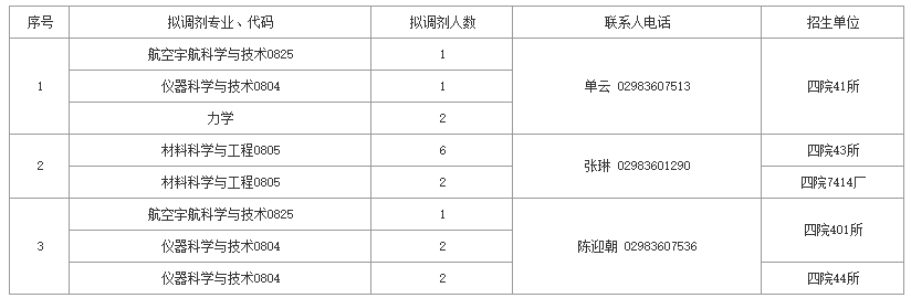 以上就是“2020考研調劑信息:航天技術研究院2020年碩士研究生招生調劑信息”的全部內容!更多考研調劑內容,請關注考研調劑信息欄目