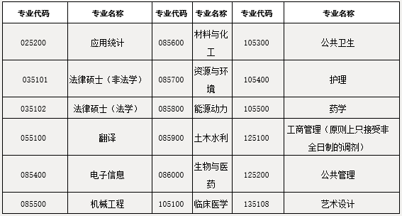 我校擬接收調劑的一級學科專業見表1,擬接收調劑的專業學位類別見表2.