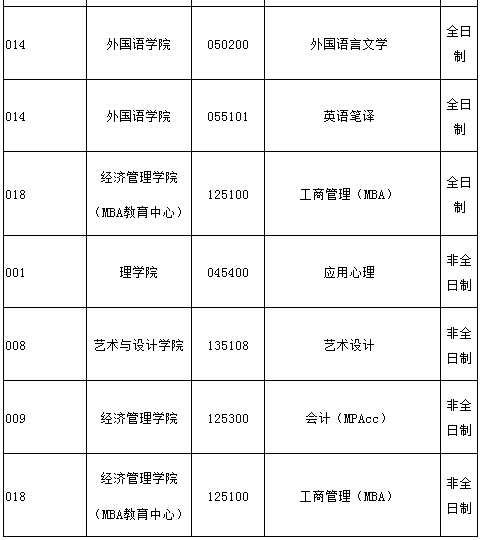答:今年我校全日制學碩、專碩均有一定規模擴招,部分專業擬接收調劑考生,具體見下表:專業僅供考生參考,具體請咨詢相關招生學院,調劑名額根據招生計劃和一志愿復試情況確定,以學院官方網站公布的調劑方案為準。