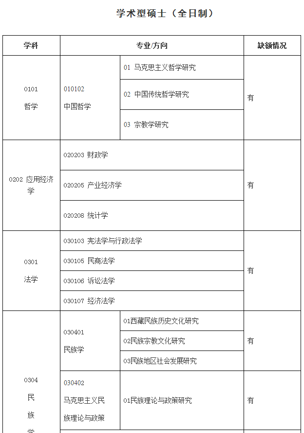 (5)民族地區公共管理研究(0304Z1)接受報考法學類(03)、公共管理一級學科(1204)的考生調劑。