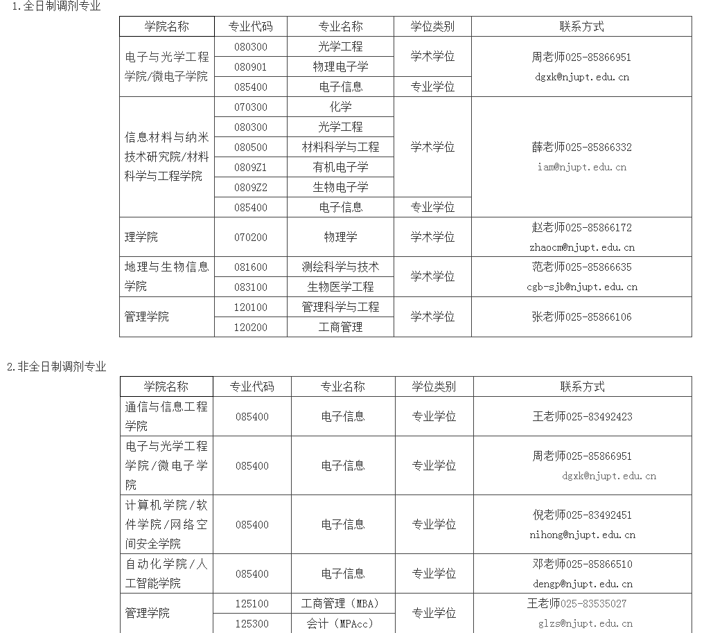 5. 非全日制調劑專業接收報考學術學位和專業學位相同或相近專業的定向考生。原則上非全日制碩士研究生招收在職定向就業人員。