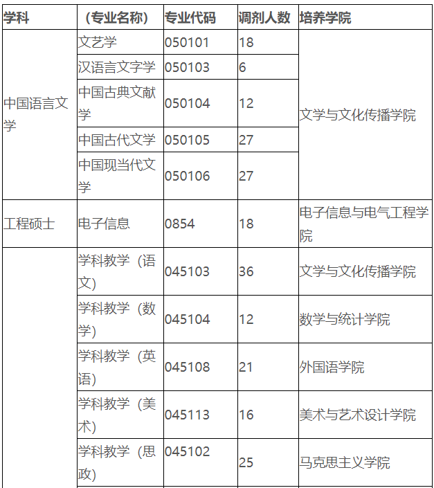 2020年我校全日制專業學位教育碩士、工程碩士、中國語言文學專業均有調劑名額。為方便考生調劑,現將我校2020年調劑相關事宜公告如下: