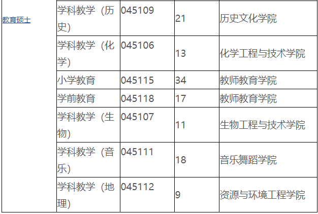 天水師范學院2020年碩士研究生各專業招生分專業計劃表
