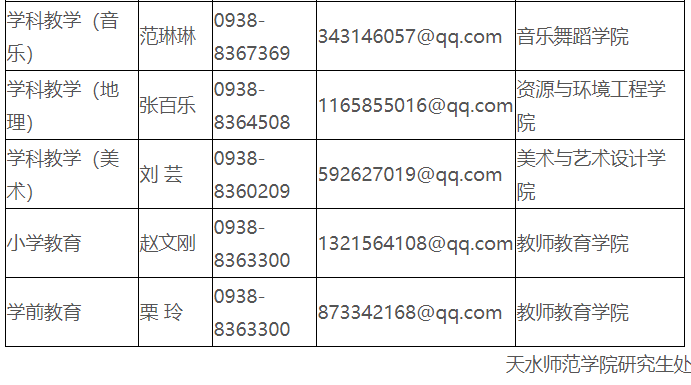以上就是“2020考研調劑信息:天水師范學院2020年碩士研究生招生調劑信息”的全部內容!更多考研調劑內容,請關注考研調劑信息欄目