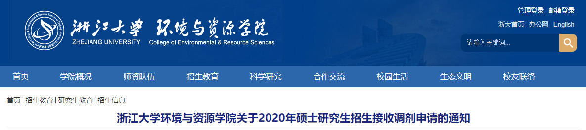 原標(biāo)題:浙江大學(xué)環(huán)境與資源學(xué)院關(guān)于2020年碩士研究生招生接收調(diào)劑申請(qǐng)的通知