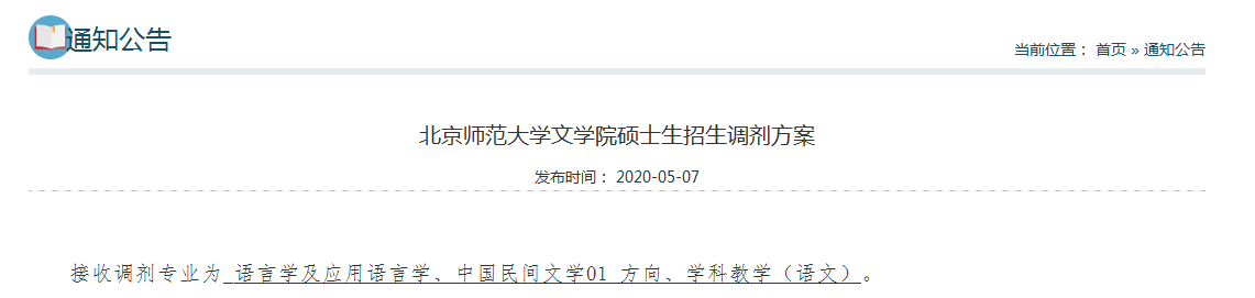 1)第一志愿報考北京師范大學文學院學術學位碩士生專業,初試科目與調入專業初試科目相同。