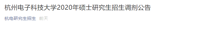 原標題:杭州電子科技大學2020年碩士研究生招生調劑公告