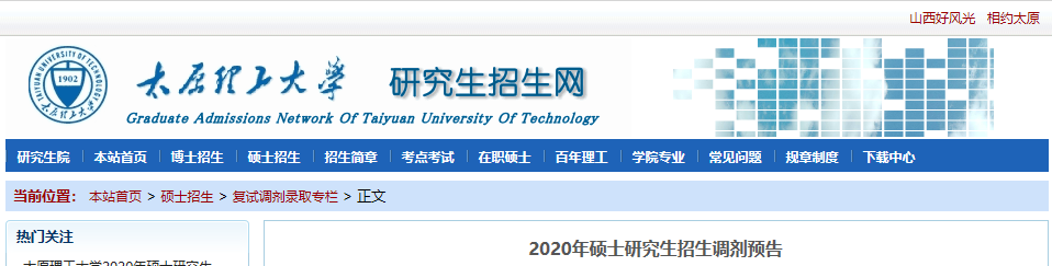 以上就是“2020考研調劑信息:太原理工大學2020年碩士研究生招生調劑信息”的全部內容!更多考研調劑內容,請關注考研調劑信息欄目