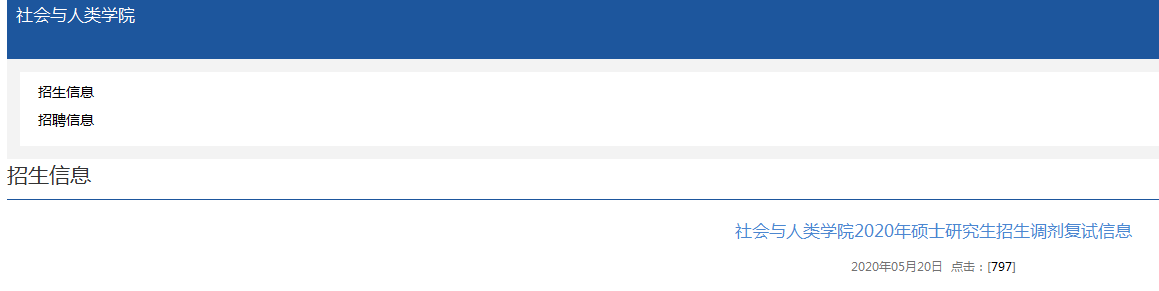 原標題:社會與人類學院2020年碩士研究生招生調劑復試信息