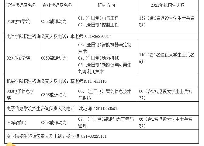 我校2021年擬招收全日制能源動力專業學位碩士研究生405名(包括退役大學生士兵專項計劃5名),尚有較多缺額,需要調劑。特此公告如下: