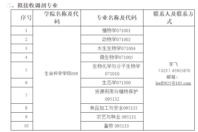 以上就是小編整理2021考研預調劑:重慶師范大學生命科學學院接收調劑預報名公告的全部內容,想了解更多調劑相關信息請持續關注本網站。