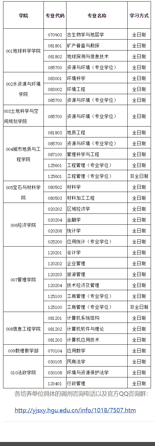 根據我校一志愿生源情況,我校目前有以下專業接收調劑,歡迎調劑到河北地質大學!