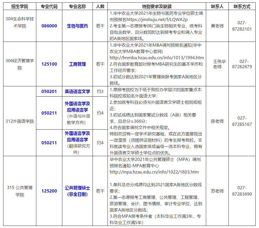 以上就是小編整理“2021考研調劑:華中農業大學2021年碩士研究生調劑工作通知”的全部內容,想了解更多調劑信息,請持續關注本網站。