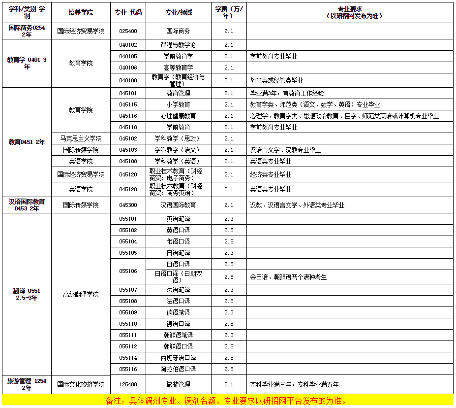 2. 專業(yè)要求:調(diào)入專業(yè)與第一志愿報(bào)考專業(yè)相同或相近,應(yīng)在同一學(xué)科門類范圍內(nèi)。畢業(yè)專業(yè)等相關(guān)要求詳見上表。