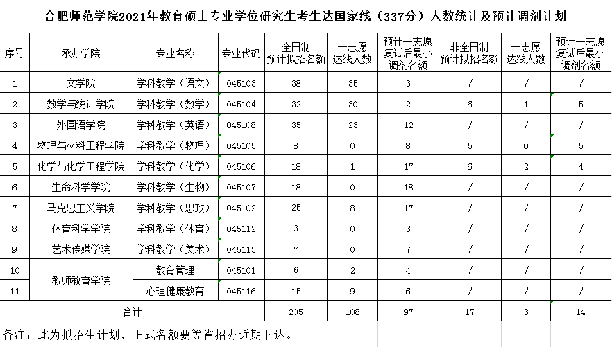 根據(jù)教育部公布《2021年全國(guó)碩士研究生招生考試考生進(jìn)入復(fù)試的初試成績(jī)基本要求》(專業(yè)學(xué)位類)中“教育”基本分?jǐn)?shù)線(A類),現(xiàn)將我校達(dá)線名單公布如下,正式復(fù)試時(shí)間及方式,請(qǐng)隨時(shí)關(guān)注我校網(wǎng)站:http://yjsc.hfnu.edu.cn/。我校所有復(fù)試錄取等信息均通過(guò)此網(wǎng)站公布。