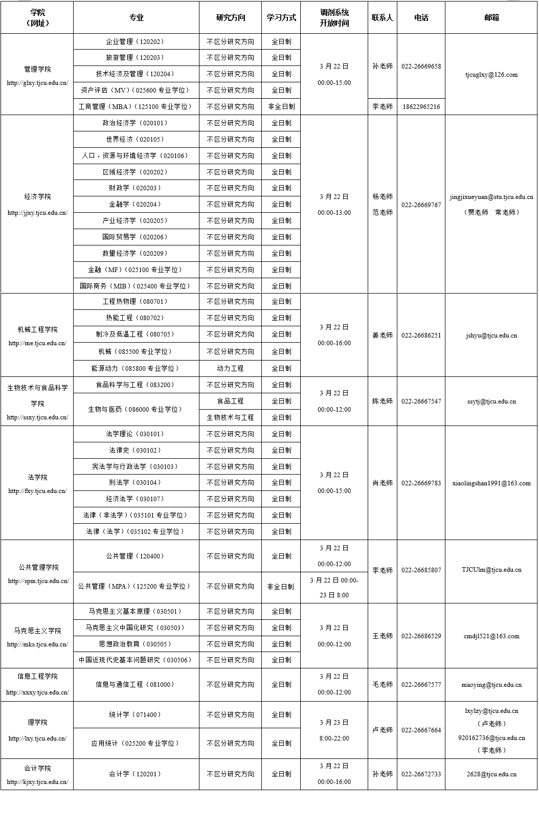 1.考生可登陸我校研究生處網(wǎng)站、研究生招生網(wǎng)查看《天津商業(yè)大學2021年碩士研究生招生復試錄取工作辦法》,登錄調(diào)劑專業(yè)所在學院網(wǎng)站查看學院復試細則和調(diào)劑辦法。
