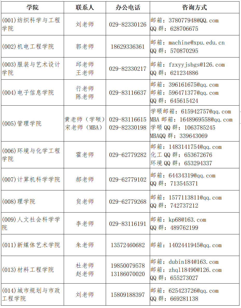 西安工程大學研招辦咨詢電話:029-82330076(傳真)