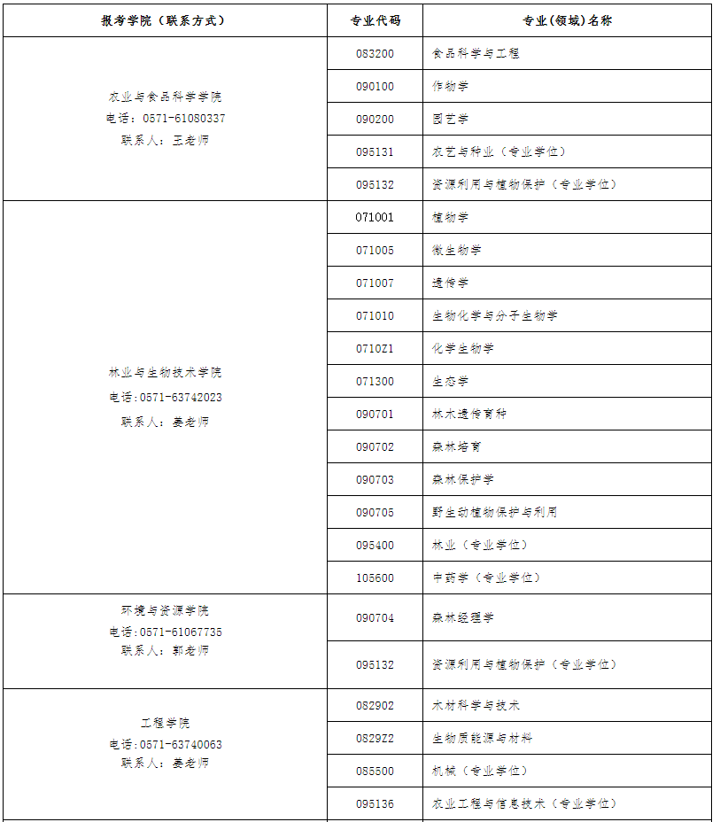 以上就是小編整理“2021考研調劑:浙江農林大學2021年碩士研究生招收調劑信息”的全部內容,想了解更多調劑信息,請持續關注本網站。