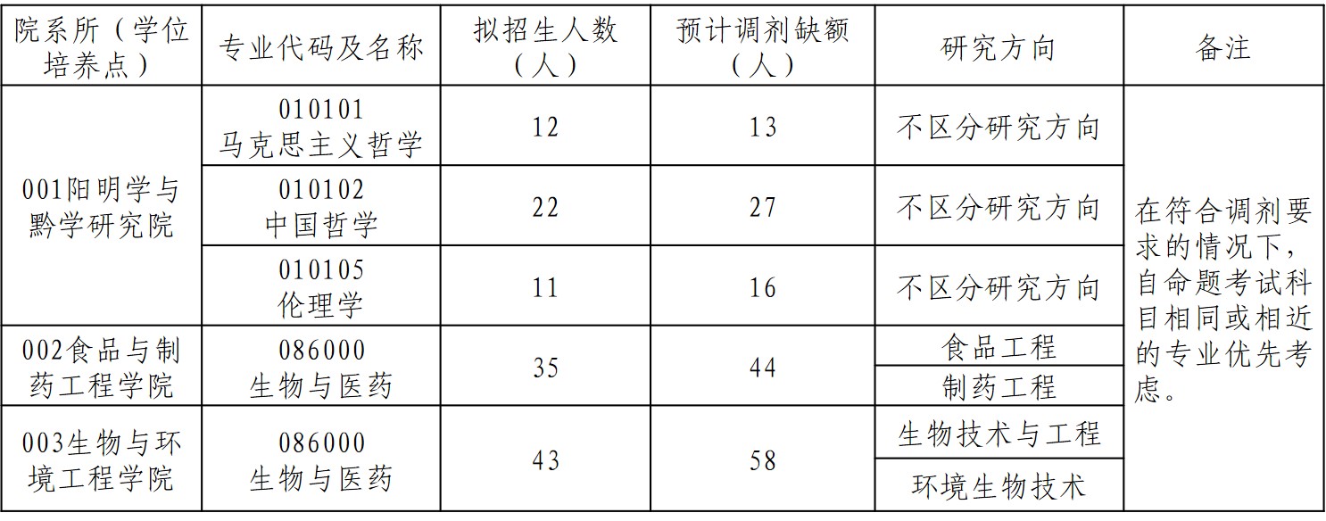 (二)招生計劃調整。我校可根據調劑情況在學科(專業)內適當調整招生計劃名額。