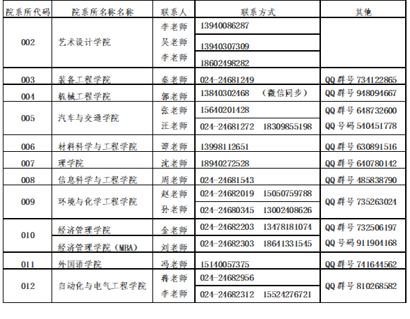 ★沈陽理工大學(xué)各招生學(xué)院調(diào)劑咨詢聯(lián)系表