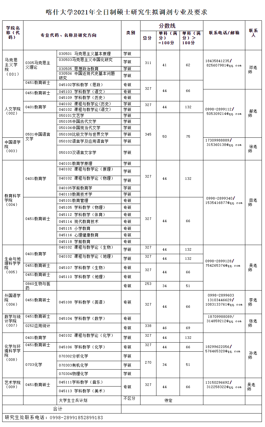 以上就是小編整理“2021考研調劑:喀什大學2021年碩士研究生調劑公告”的全部內容,想了解更多調劑信息,請持續關注本網站。