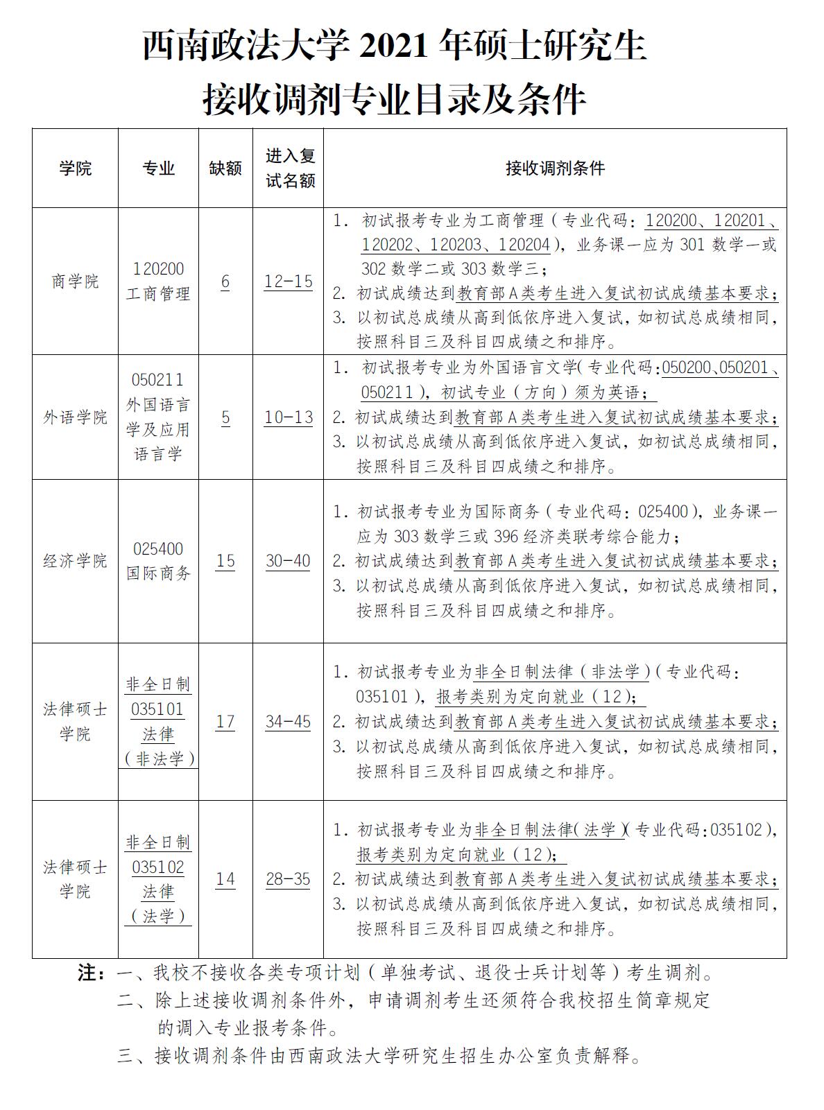 附件:西南政法大學2021年碩士研究生接收調劑專業目錄及條件