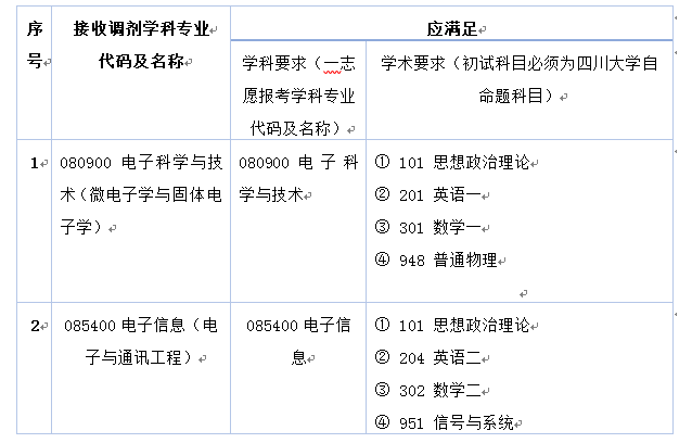 1. 調劑考生須符合四川大學第一志愿報考專業及準備調入專業(領域)報考條件;