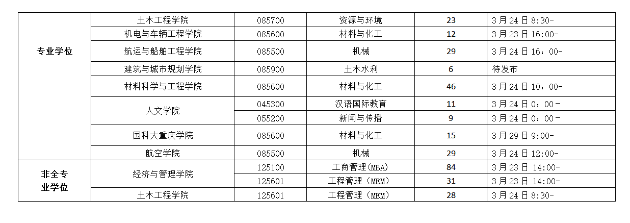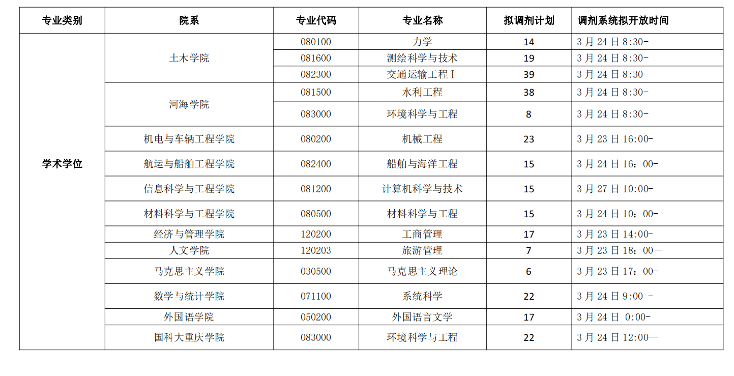 更新:城市與建筑規劃學院土木水利調劑開放時間為3月26日9:00-調劑滿額為止(但不少于12h),詳見學院調劑細則。