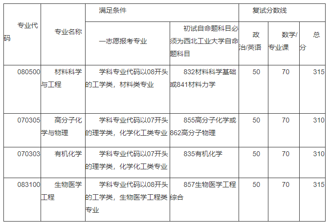1.調劑生初試成績需達到西北工業大學第一志愿報考專業復試基本分數線;