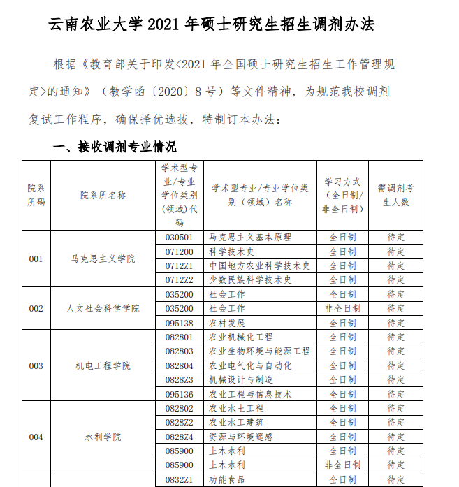原文標題:云南農業大學2021年碩士研究生招生調劑辦法