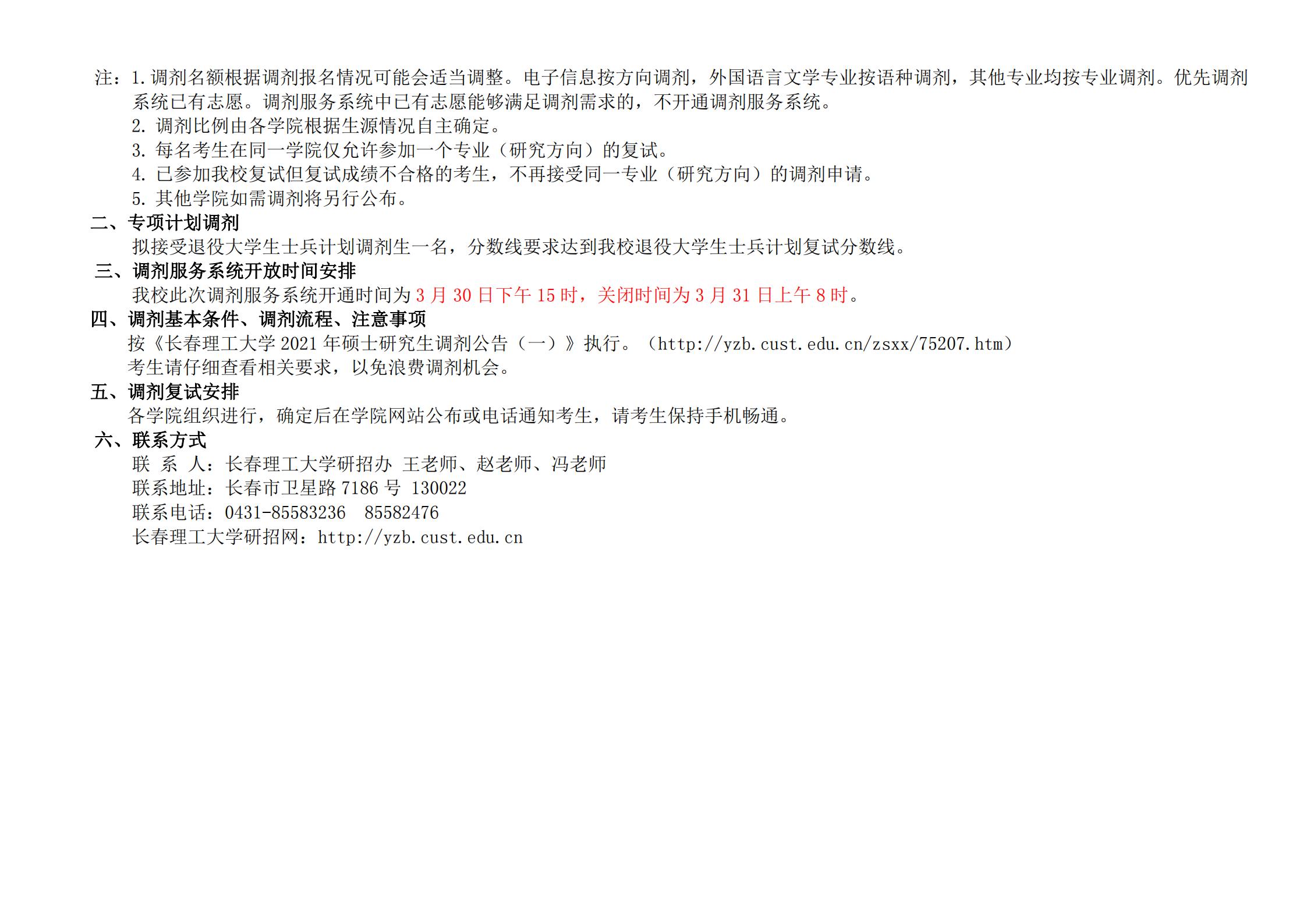 以上就是小編整理“2021考研調劑:長春理工大學部分學院2021年碩士研究生調劑公告(四)”的全部內容,想了解更多調劑信息,請持續關注本網站。