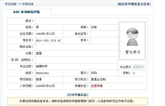 (三)所有考生的資格審核以錄取結(jié)果上報(bào)教育部后的審核結(jié)果為準(zhǔn)。若考生在學(xué)信網(wǎng)無法查詢到本人信息(附圖2)或?qū)W信網(wǎng)備案信息與報(bào)考信息不符(均可能造成教育部錄取審核無法通過,無法錄取),請立即與本科院校相關(guān)部門聯(lián)系以盡快更正或按以下辦法進(jìn)行學(xué)籍學(xué)歷認(rèn)證: