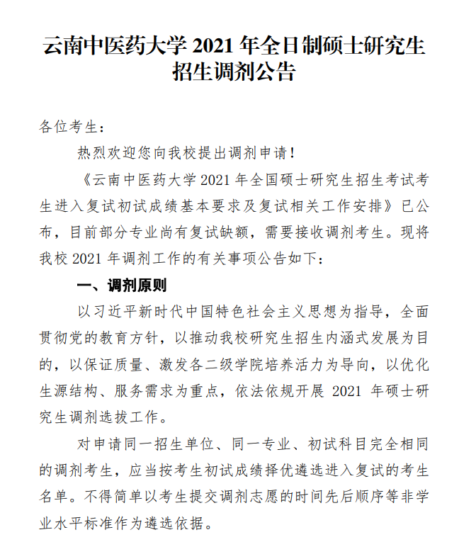 以上就是小編整理“2021考研調劑:云南中醫藥大學2021年招收碩士學位研究生調劑公告”的全部內容,想了解更多調劑信息,請持續關注本網站。